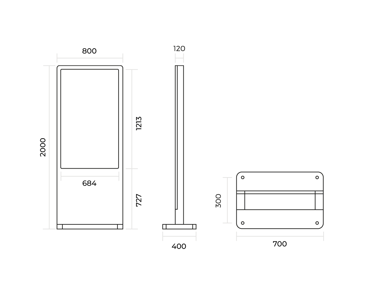 v, consente la gestione fluida di contenuti dinamici. Il design elegante nero e la struttura resistente agli agenti atmosferici (IP65) lo rendono ideale per pubblicità digitale, info point, hotel, negozi ed enti pubblici.